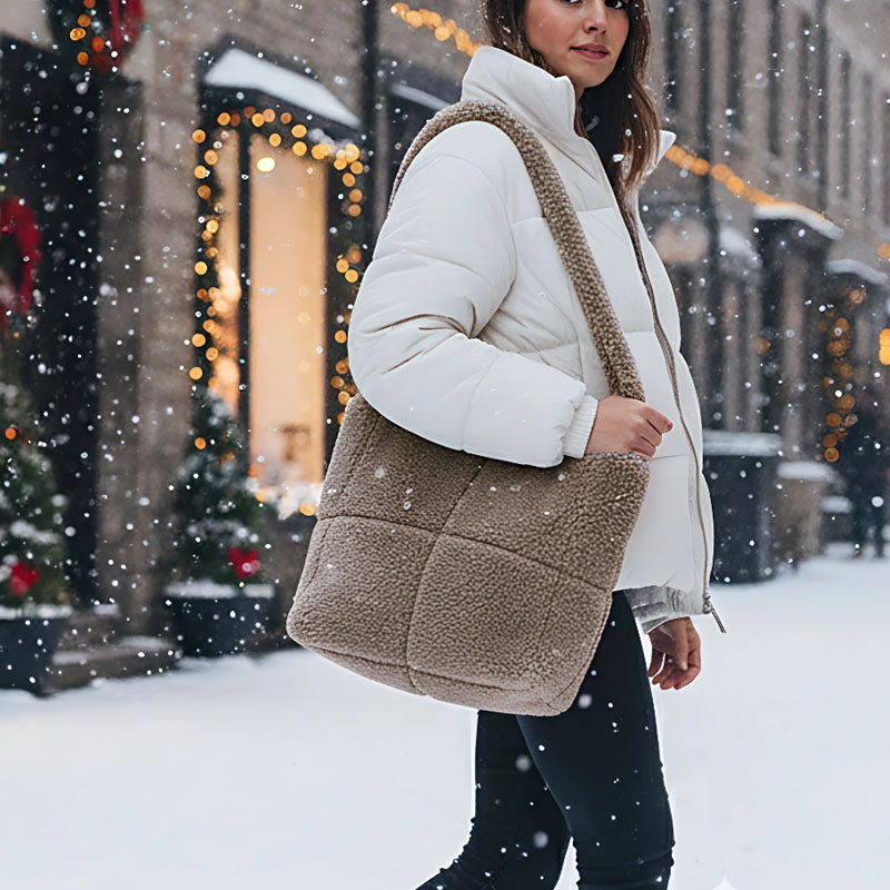 Женская сумка из мягкого фактурного материала с уютным эффектом «тедди».
