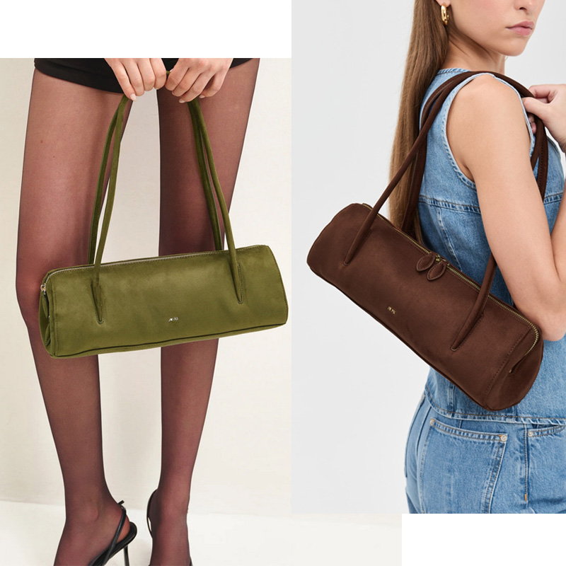 Женская сумка вытянутой формы с бархатистой фактурой.