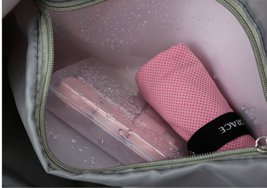 - внутри имеет водонепроницаемый карман для мокрого полотенца и душевых принадлежностей