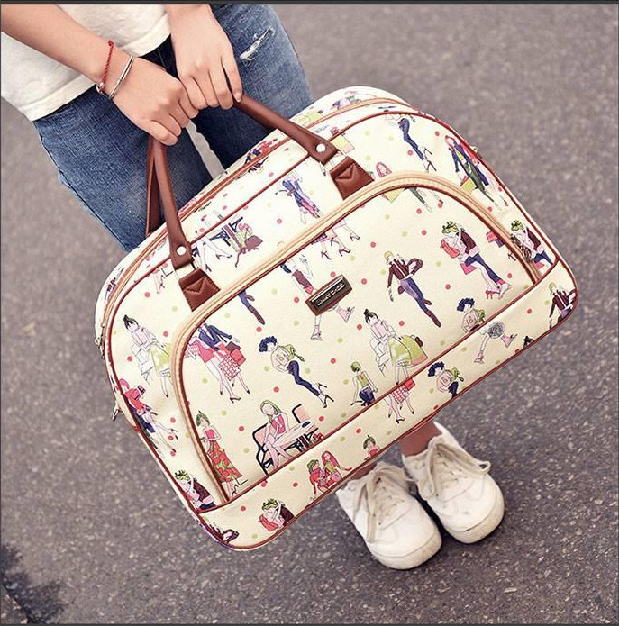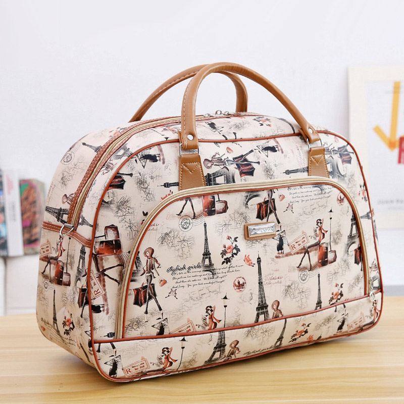 Стильная дорожная сумка из прочной экокожи с ярким декоративным принтом.