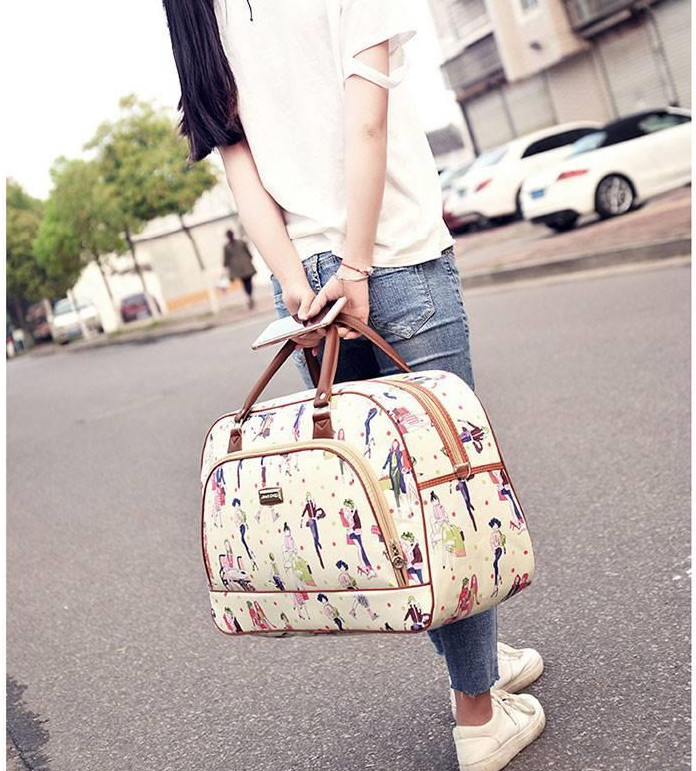 Стильная дорожная сумка из прочной экокожи с ярким декоративным принтом.