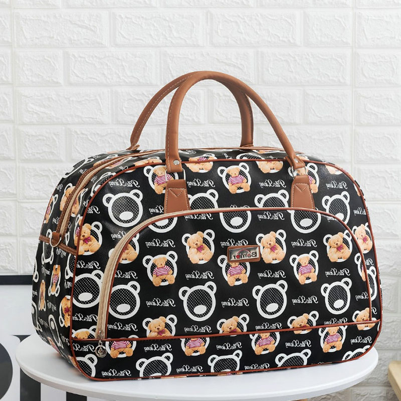 Стильная дорожная сумка из прочной экокожи с ярким декоративным принтом.