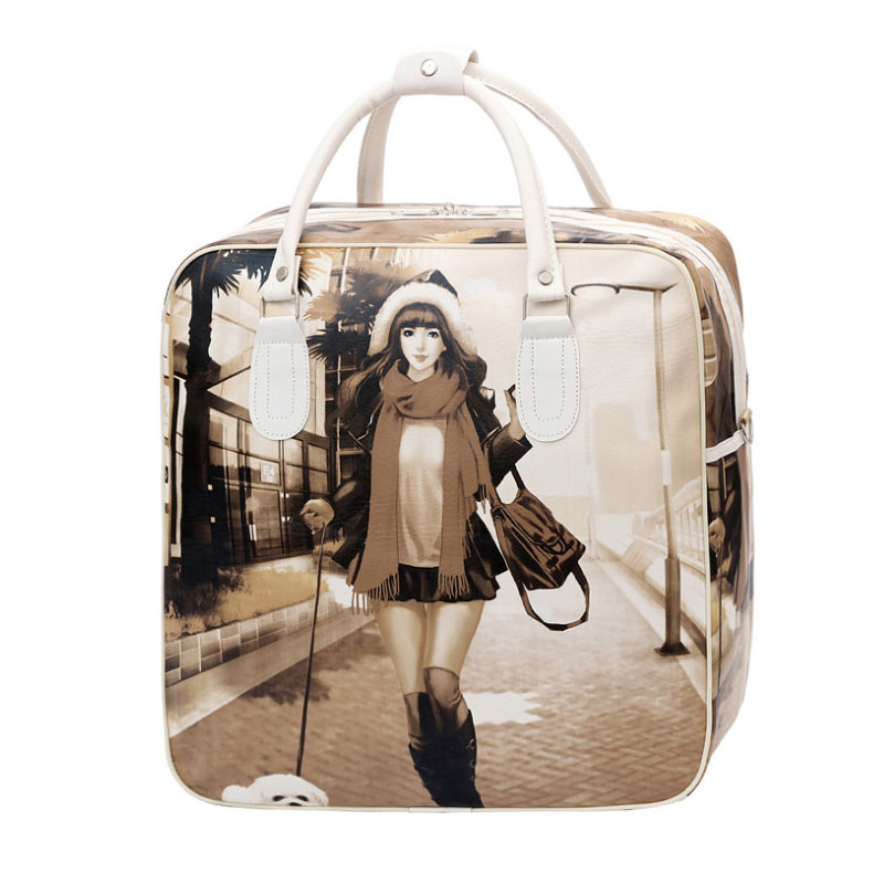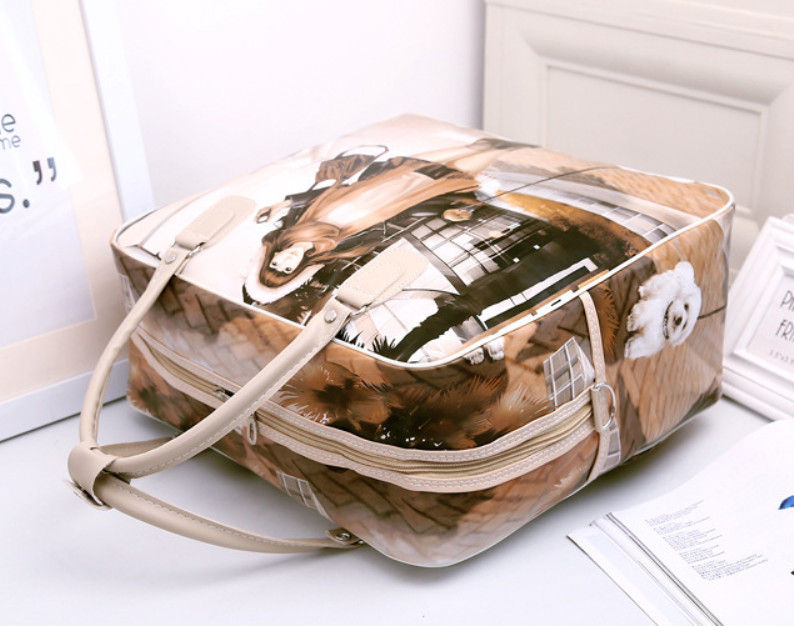 Стильная дорожная сумка из прочной экокожи с ярким декоративным принтом.