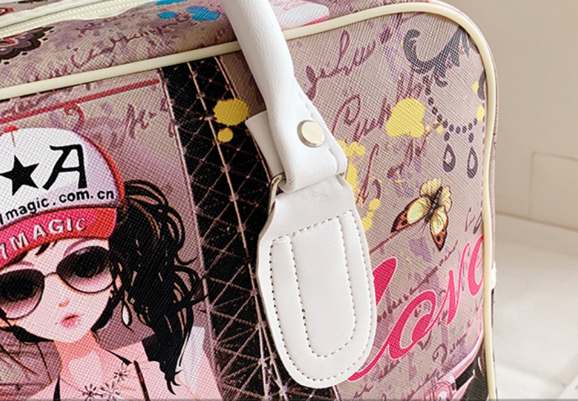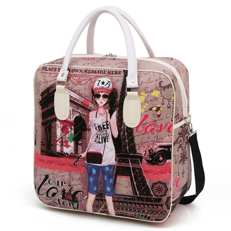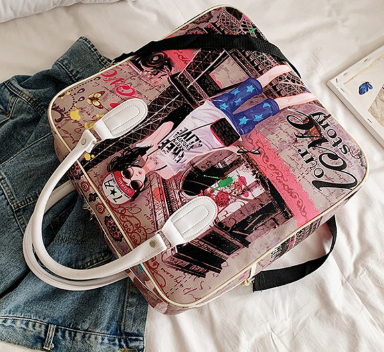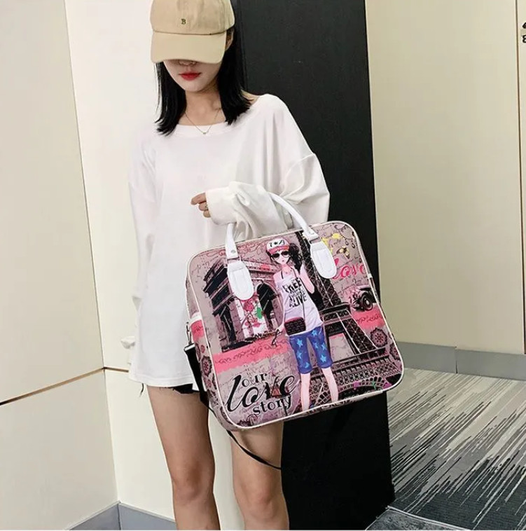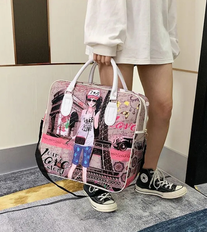 Стильная дорожная сумка из прочной экокожи с ярким декоративным принтом.