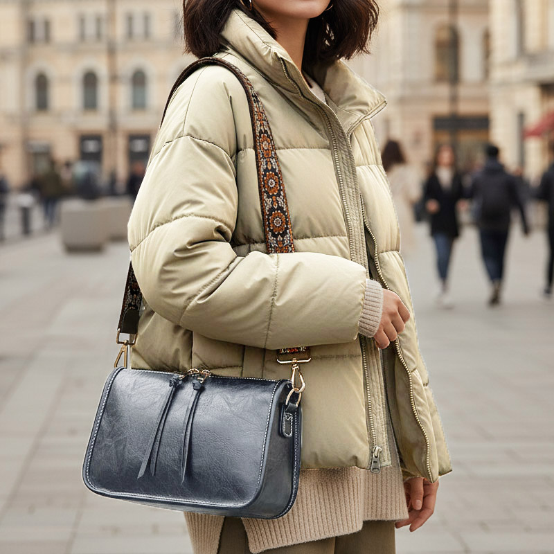 Внутри 1 большое отделение с 2-мя карманами + карман с обратной стороны сумки.