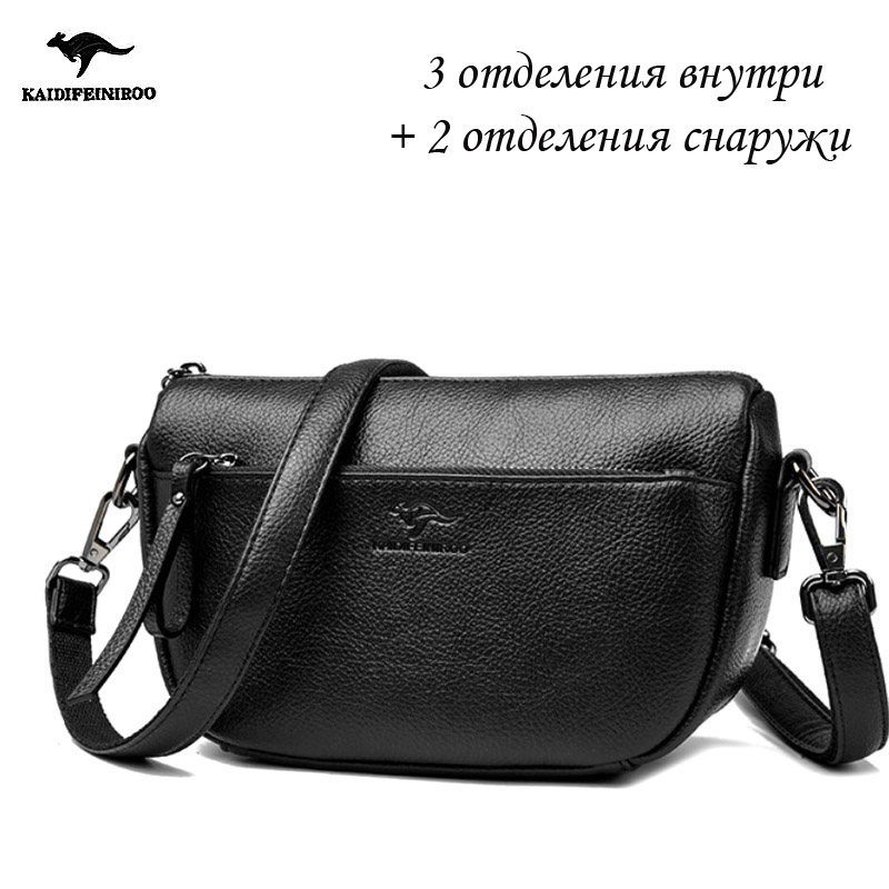 Внутри: 3 независимых отделения, среднее из которых на молнии, крайние отделения закрываются на кнопку-магнит.