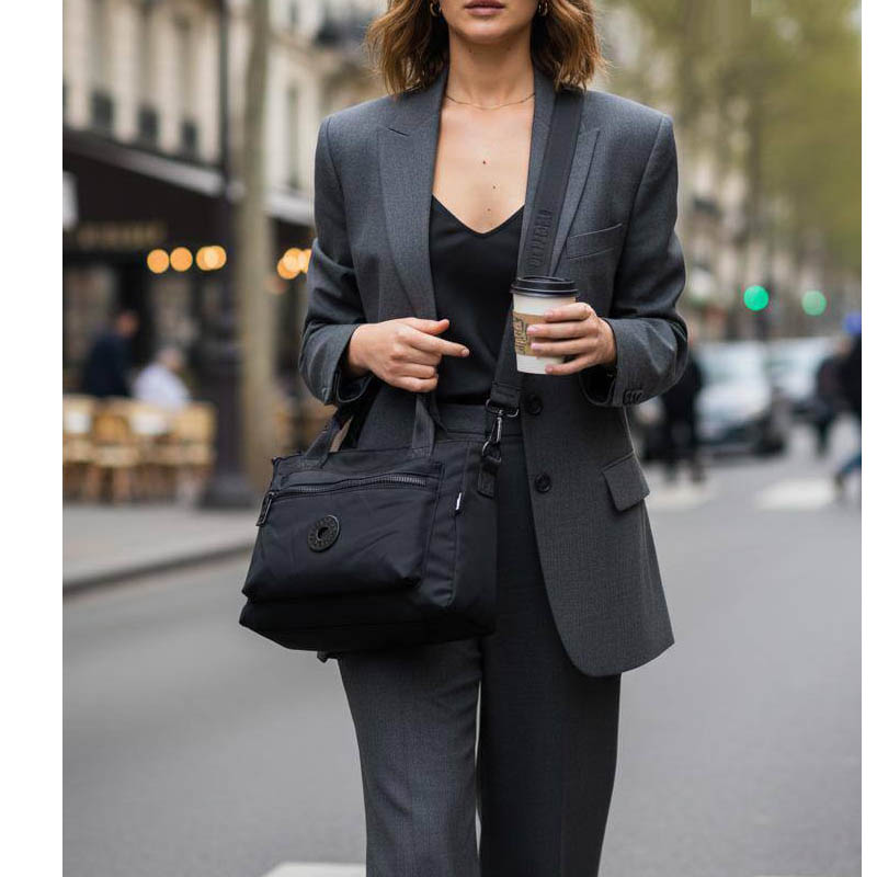 Женская сумка бренда "Bobo". Внутри: карман на молнии + 2 кармана б/молнии С обратной стороны: карман на молнии С лицевой стороны: доп. отделения на молнии Материал: полиэстер Размер: 23-16-9 см