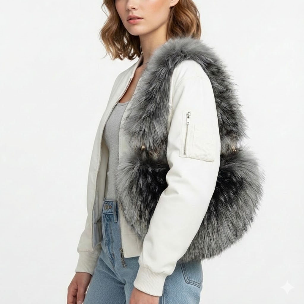 Мех густой, пушистый, с красивым градиентом, что создаёт эффект натурального меха.