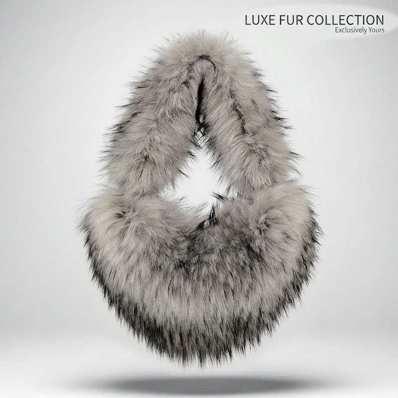 Мех густой, пушистый, с красивым градиентом, что создаёт эффект натурального меха.