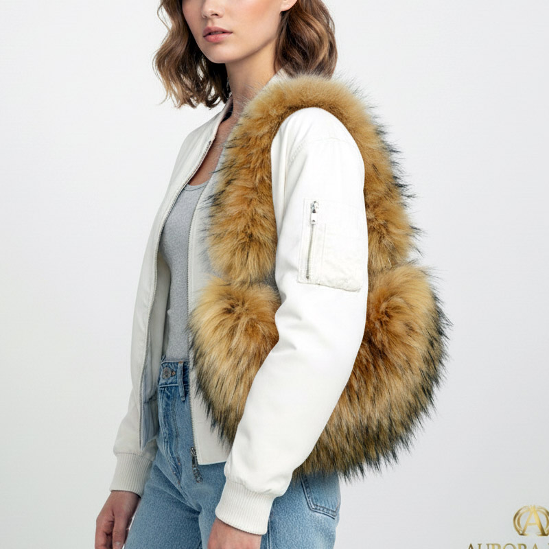 Мех густой, пушистый, с красивым градиентом, что создаёт эффект натурального меха.