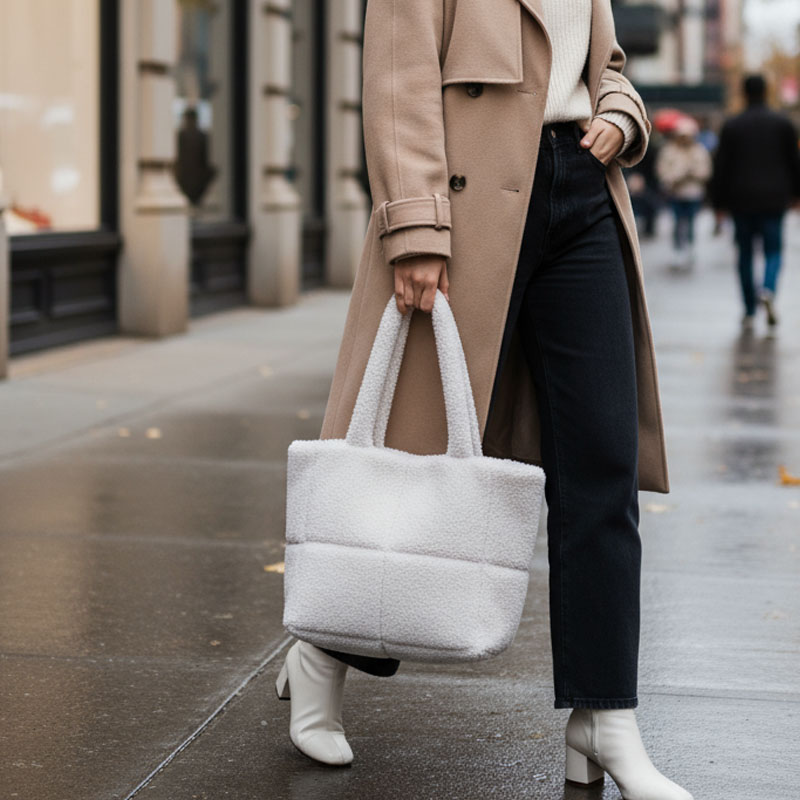 Женская сумка из мягкого фактурного материала с уютным эффектом «тедди».
