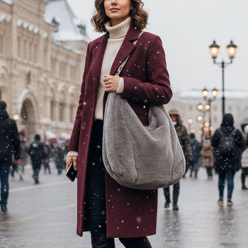 Элегантная женская сумка из мягкого искусственного меха " Teddy "  с плавными линиями и объёмным силуэтом.