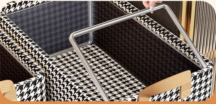 Коробка для хранения с крышкой на метеллическом каркасе.