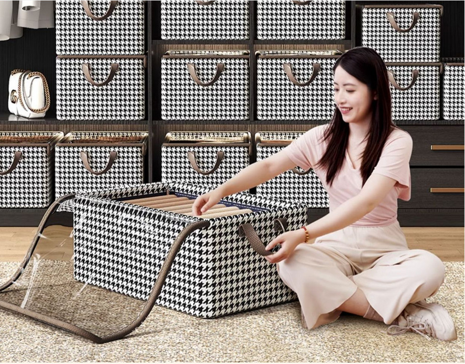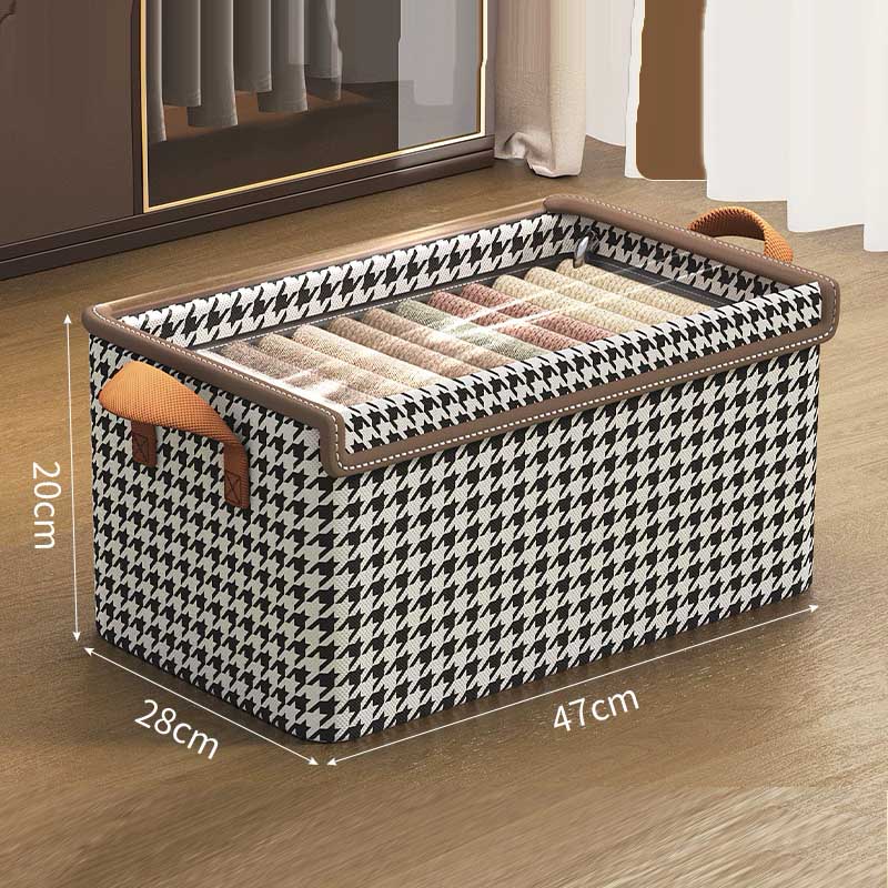 Коробка для хранения с крышкой на метеллическом каркасе.