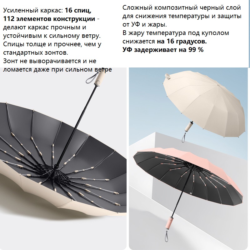 Новейшая модель с усиленного зонта, разработанного спецально для дождя, снегопада и порывов ветра.