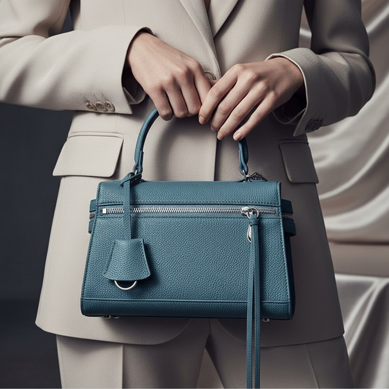 Элитная, нишевая сумка из зернистой кожи в благородном голубом оттенке.