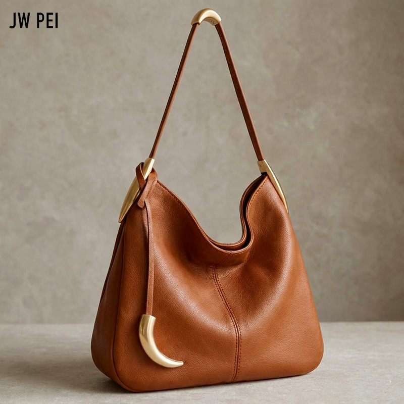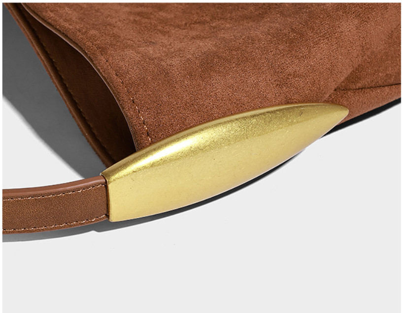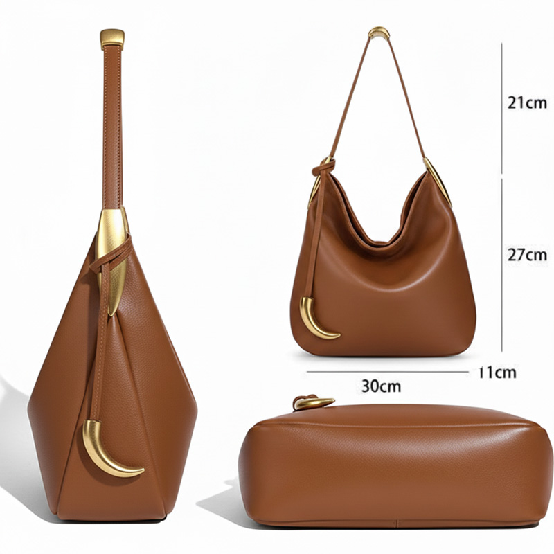 Стильная женская сумка  с  фактурой натуральной кожи. Плавный, слегка асимметричный силуэт выглядит живо и естественно, подчёркивая расслабленный, но продуманный характер модели. Удобная ручка на плечо дополнена аккуратными металлическими элементами в тёплом золотом оттенке, которые добавляют изящный акцент.