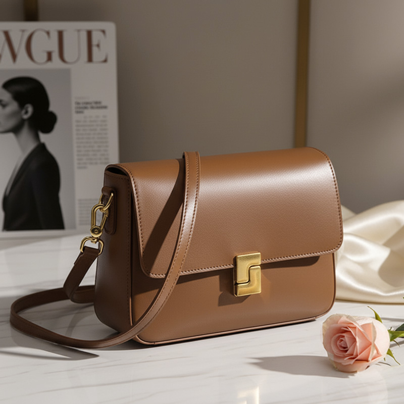 Компактная женская сумка из гладкой кожи с чёткой формой.