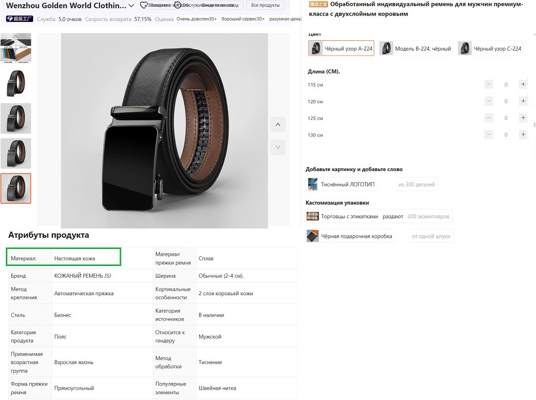 Паспорт на материал изделия - см.фото